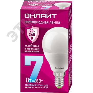 Лампа светодиодная 7вт OLL-G45-7-230-6.5K-E14-FR PRO 90-240В ОНЛАЙТ