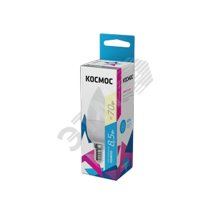 Светодиодная лампочка 8,5 Вт является аналогом лампы накаливания ''свеча'' 70 Вт - для средней комнаты понадобится 3 таких лампочки. Стабильный свет без падения яркости в течение всего срока службы (30 000 часов) - за счет использования светодиодов известных производителей. Лампа работает в диапазоне от 174В до 265В - не перегорит и не потеряет яркость при скачках напряжения в сети.Цвет свечения лампы - 3000 К теплый белый, идеально подойдет для спальни, и других зон, где требуется мягкий, расслабляющий свет. ''Здоровый'' свет без мерцания не утомляет глаза, а высокий индекс цветопередачи передает естественные цвета и оттенки.По размеру сопоставима с обычной лампочкой накаливания, но экономит до 90% энергии по сравнению с ней. Экологически безопасна и не требует утилизации. 2 года гарантии.
