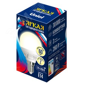 Лампа светодиодная LED 7вт 175-250В шар матовый 600Лм Е14 3000К ЯРКАЯ