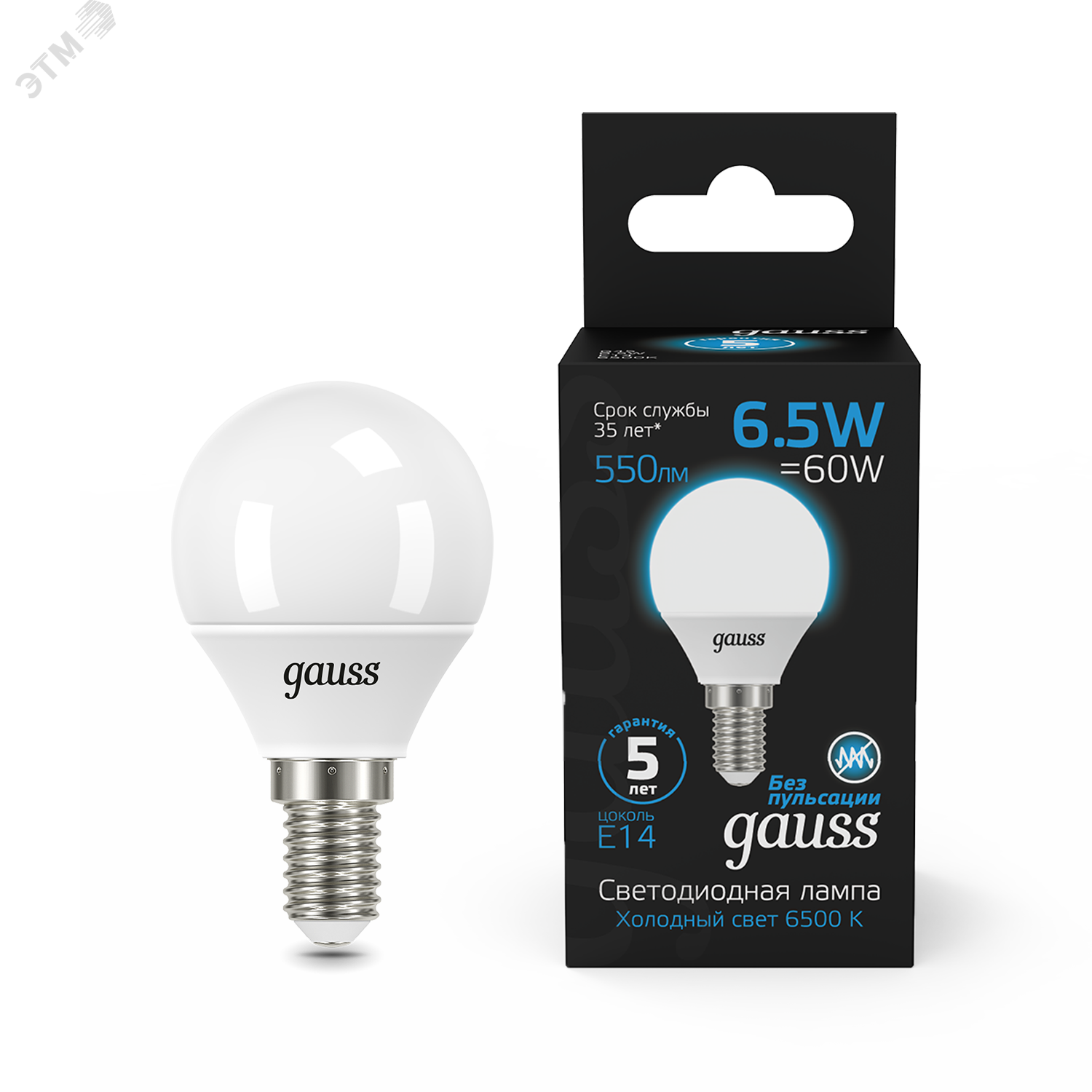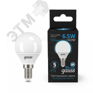 Лампа светодиодная LED 6.5 Вт 550 лм 6500К AC150-265В E14 шар P45 холодная Black Gauss