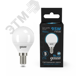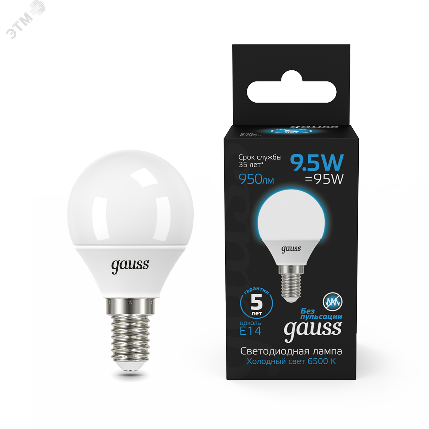 Лампа светодиодная LED 9.5 Вт 950 лм 6500К AC150-265В E14 шар P45 холодная Black