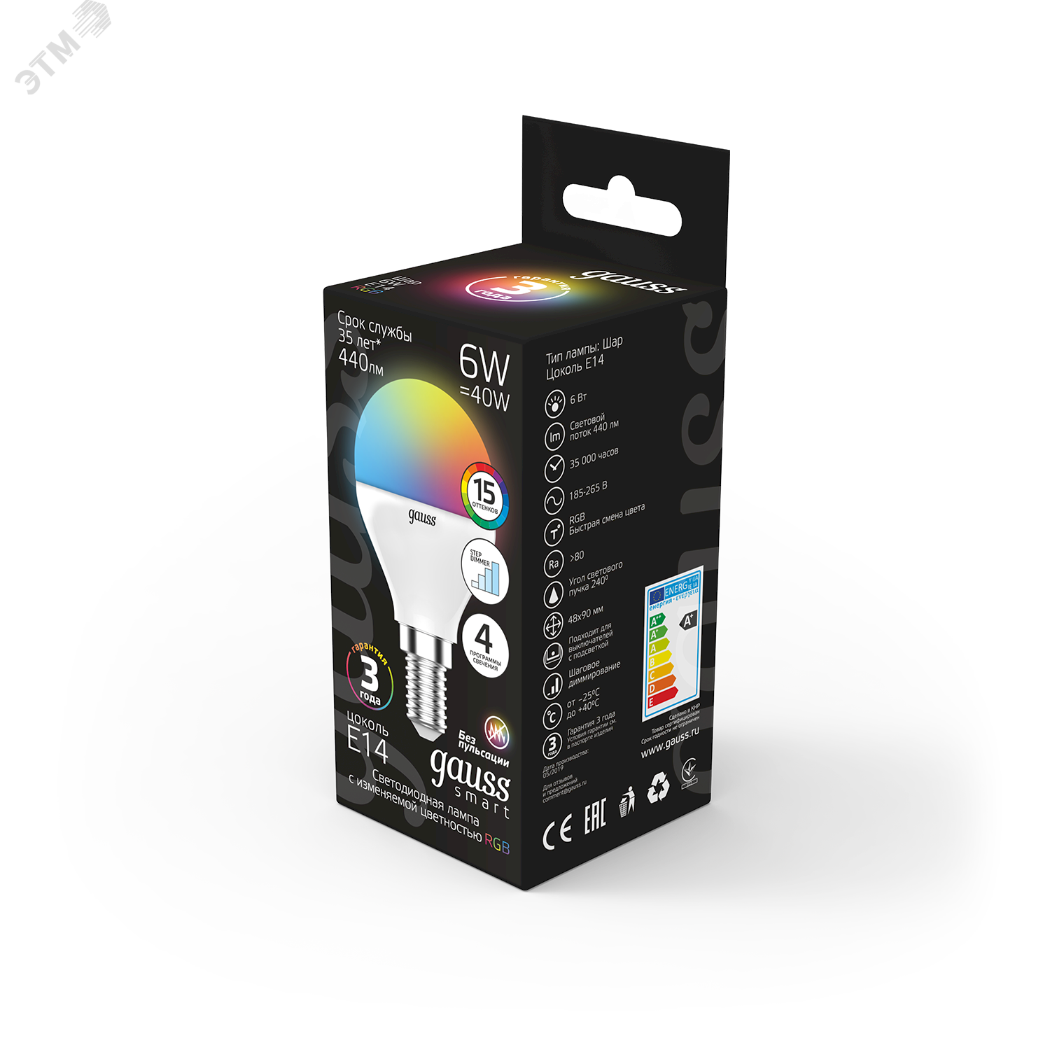 Лампа светодиодная LED 6 Вт RGB Вт+димирование E14 Шар Black