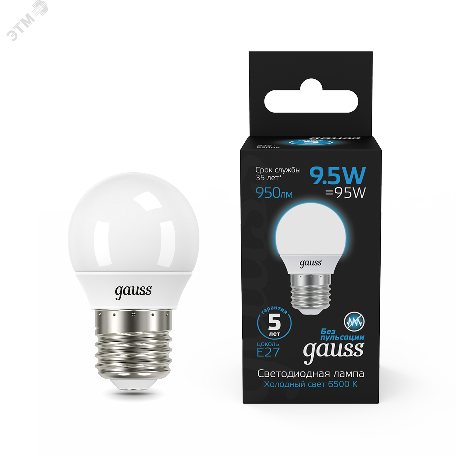 Лампа светодиодная LED 9.5 Вт 950 лм 6500К AC150-265В E27 шар P45 холодная Black Gauss