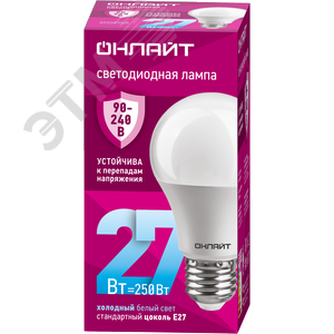 Лампа светодиодная 27вт OLL-A60-27-230-6.5K-E27 PRO 90-240В ОНЛАЙТ