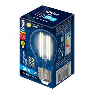 Лампа светодиодная LED 10вт 200-250В форма А прозрачное 920Лм E27 3000К Sky филамент