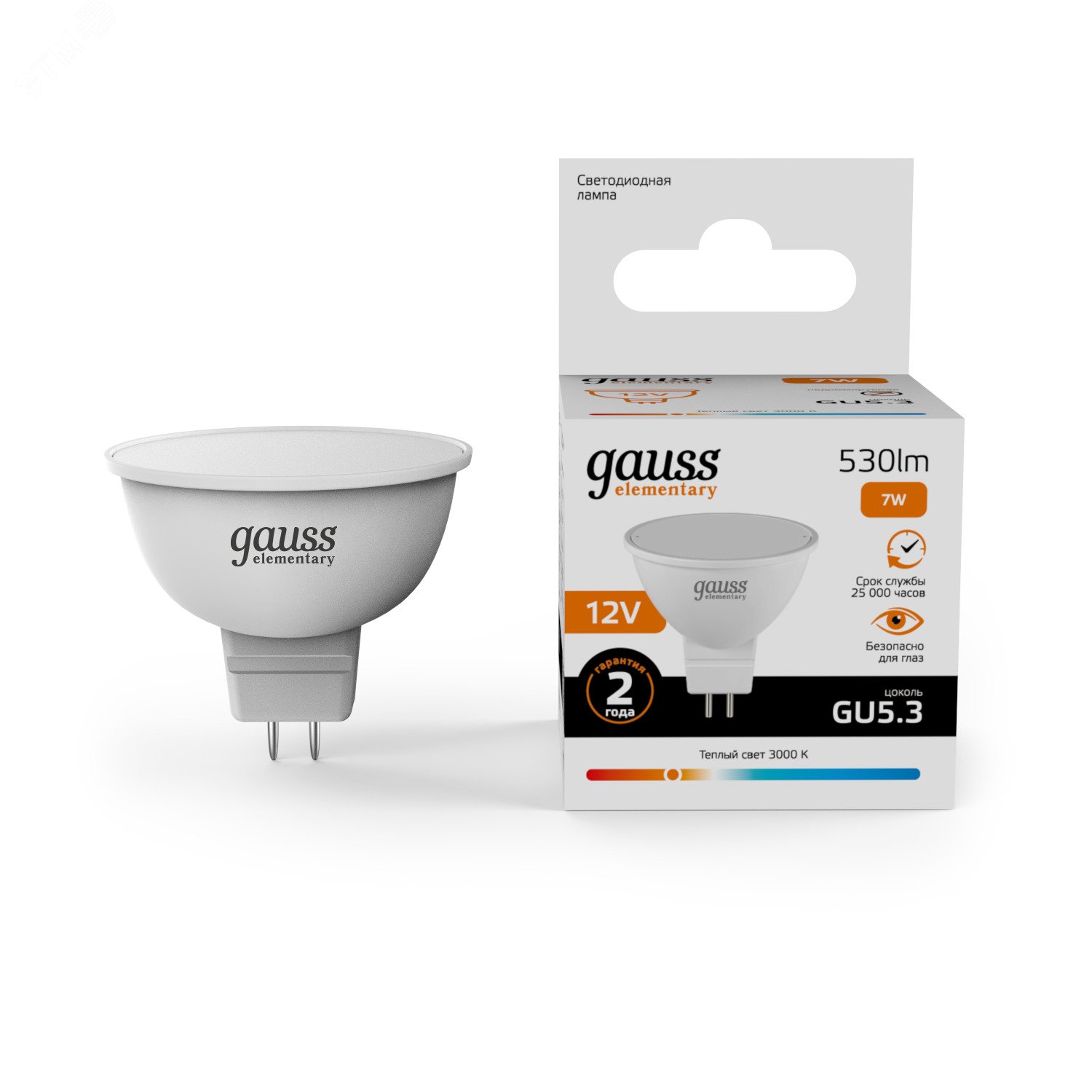 Лампа светодиодная LED 7 Вт 530 лм 3000К DC12В GU5.3 софит MR16 теплая Низковольтная Elementary Gauss 11517