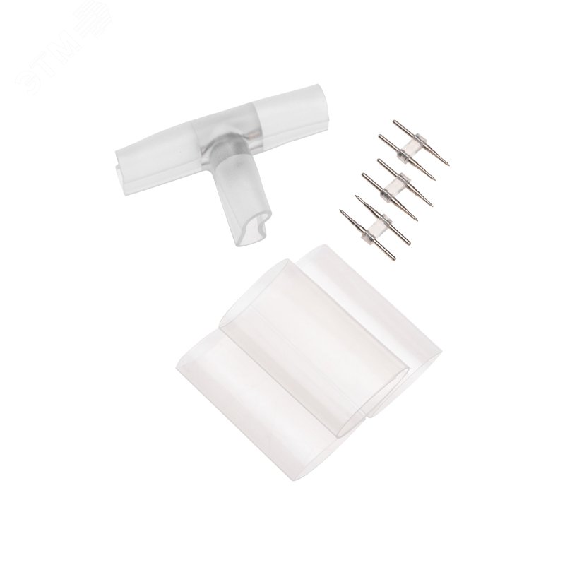 T - коннектор (муфта) используется для соединения двухстороннего гибкого неона с постоянным свечением в месте примыкания одного отрезка к прямой линии двух других. В комплекте поставляется- коннектор, 3 иглы, 3 термоусаживаемые трубки. При подключении гибкого неона к соединительному разъему (муфте) необходимо заизолировать свободное воздушное пространство соединительного разъема (муфты) морозостойким силиконовым герметиком, предотвращающим попадание влаги. Сверху данного соединения необходимо использовать термоусаживаемую трубку (входит в комплект).