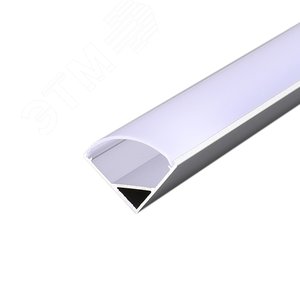 Комплект включает в себя алюминиевый профиль, рассеиватель, две заглушки (с отверстием и без отверстия) и 4 монтажные клипсы для комфортного монтажа. Угловой профиль универсален в применении, подходит для освещения или подсветки при установке по периметру помещения и кухонного гарнитура. Профиль выполняет важную функцию отвода тепла, образующегося в результате работы светодиодов, что увеличивает срок службы LED ленты. Также он защищает светодиодную ленту от механических воздействий и возможных повреждений. Съемный пластиковый экран обеспечивает равномерное рассеивание светового излучения и не искажает передаваемые оттенки свечения. Профиль изготовлен из анодированного алюминия. Устанавливается на поверхность посредством крепежей. Угол излучения к поверхности составляет 45 градусов. При совмещении двух угловых профилей образуется светодиодный светильник.