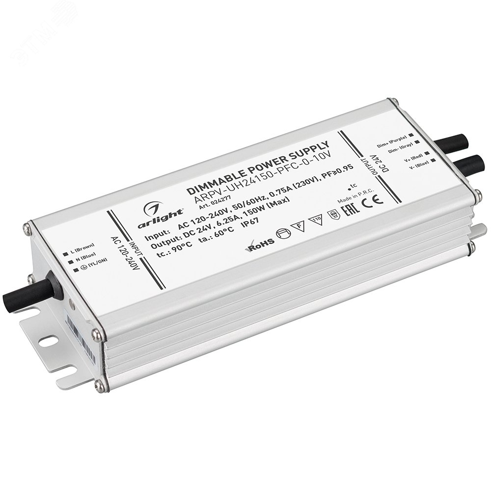 Блок питания ARPV-UH24150-PFC-0-10V (24V, 6.3A, 150W) (ARL, IP67 Металл, 7 лет)
