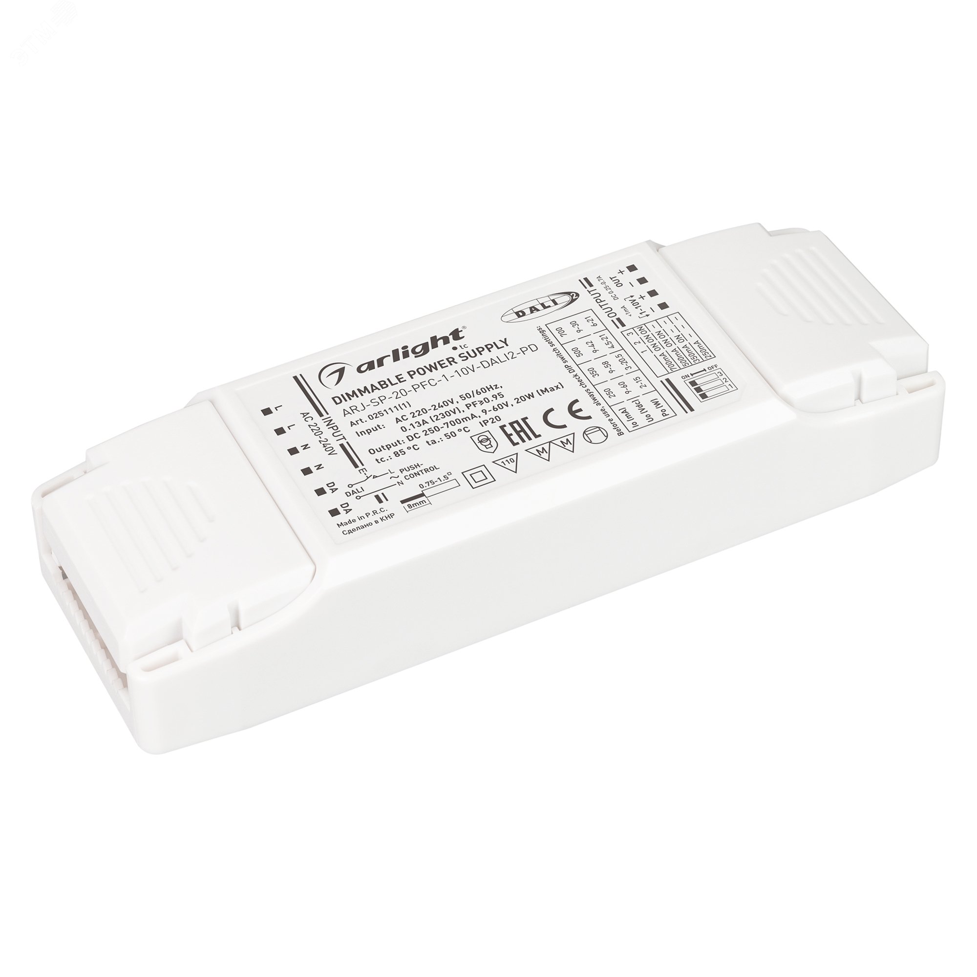 Блок питания ARJ-20-PFC-DALI-1-10V-A (20W, 250-700mA) (ARL, IP20 Пластик, 5 лет)