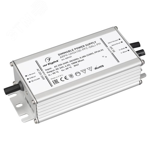 Блок питания ARPV-UH24100-PFC-DALI-PH (24V, 4.2A, 100W) (ARL, IP67 Металл, 7 лет)