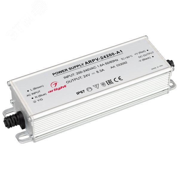 Блок питания ARPV-24200-A1 (24V, 8.3A, 200W) (IP67 металл, 3 года)