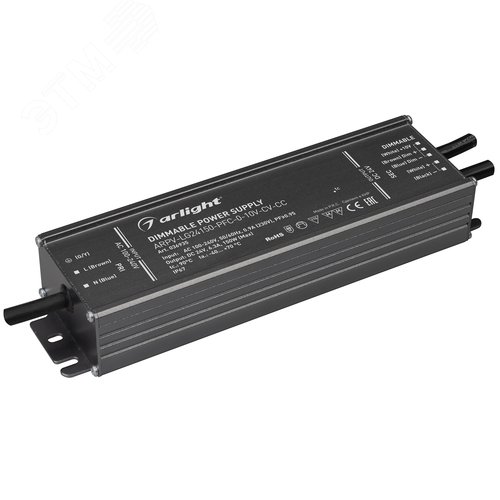 Блок питания ARPV-LG24150-PFC-0-10V-CV-CC (24V, 6.3A, 150W) (, IP67 Металл, 5 лет)
