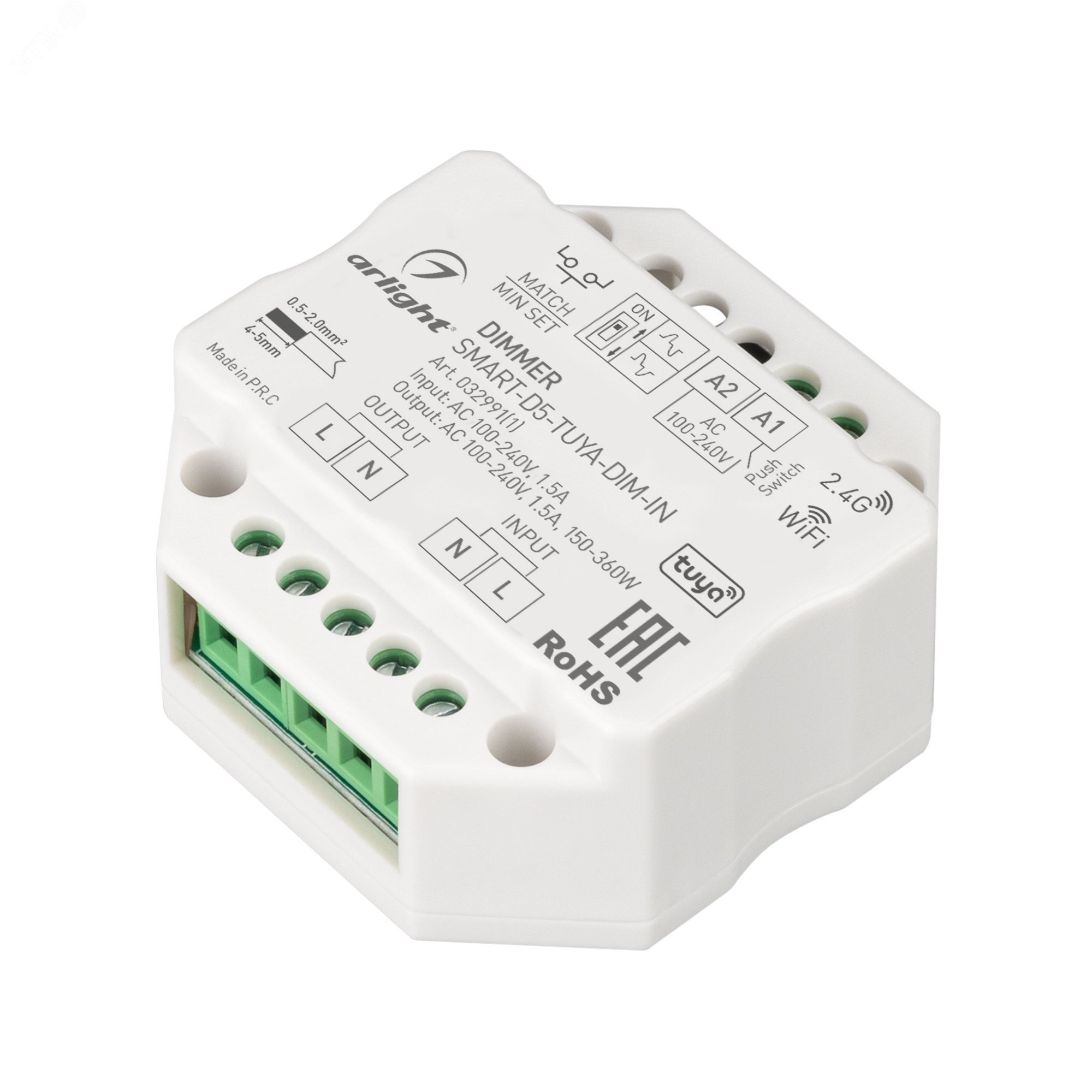 Диммер SMART-D5-TUYA-DIM-IN (230V, 1.5A, TRIAC, WiFi, 2.4G) (Arlight, IP20 Пластик, 5 лет)