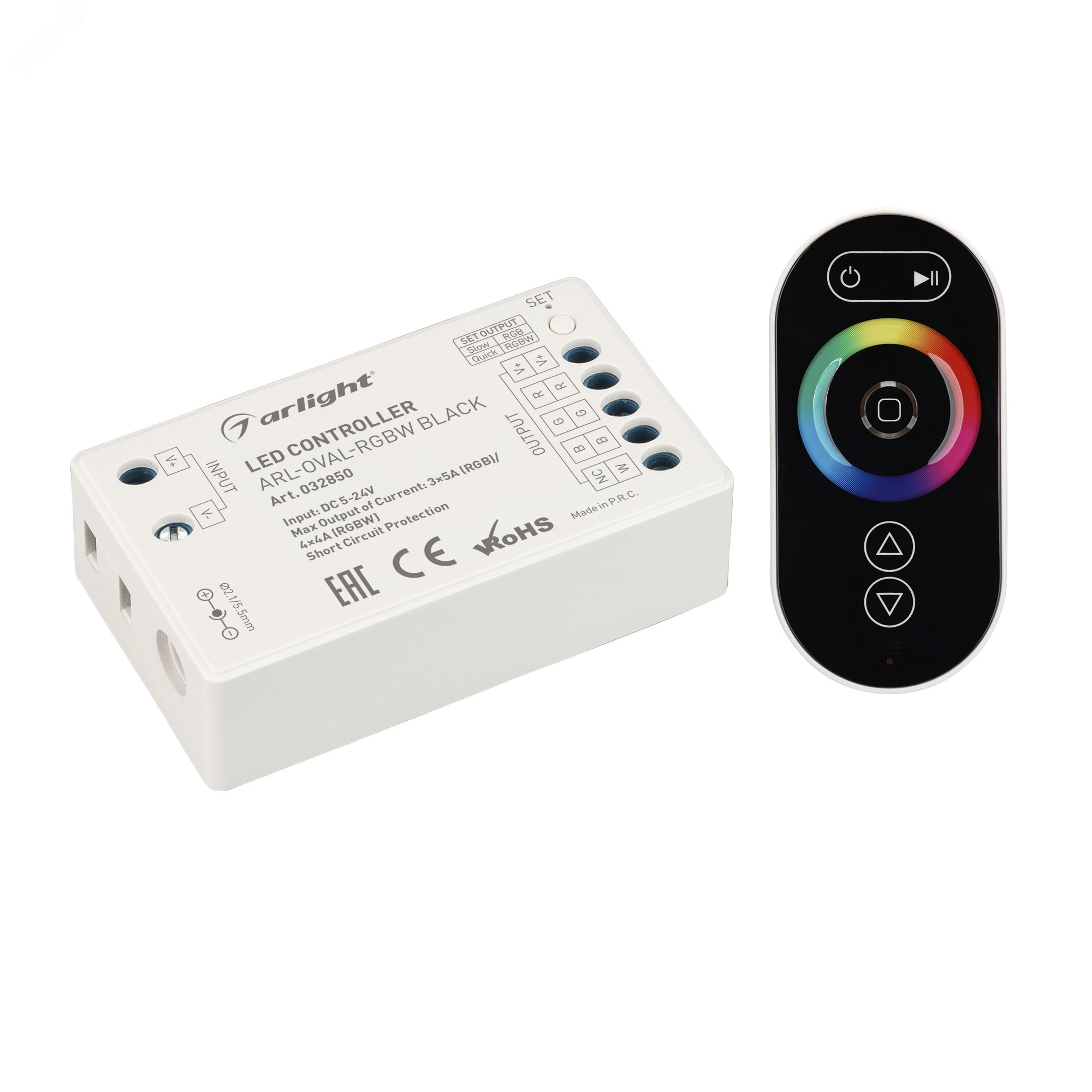 Контроллер ARL-OVAL-RGBW Black (5-24V, 4x4A, ПДУ Овал, RF) (ARL, IP20 Пластик, 3 года)