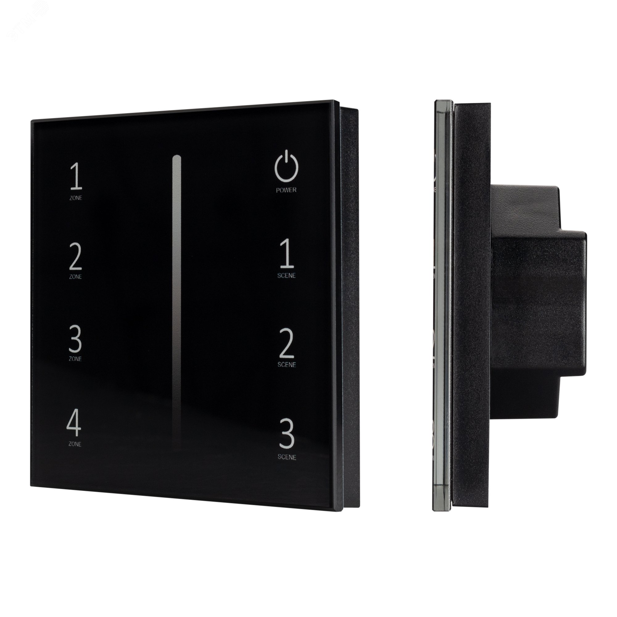 Панель Sens SMART-P17-DIM Black (230V, 4 зоны, 2.4G) (ARL, IP20 Пластик, 5 лет)
