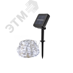 Светодиодный светильник-гирлянда 'ДЕКОРАТИВНАЯ НИТЬ' с солнечной батареей. Предназначен для декоративной подсветки кустарников, альпийских горок, террас, веранд на садовых и дачных участках, балконов и т.п. Автоматическое включение/выключение при наступлении темного/светлого времени суток (датчик освещенности). 8 режимов работы - комбинированный, волнообразный, последовательный, перетекающий, бегущая вспышка, затухающий, мерцающий, постоянный. Время непрерывной работы при полностью заряженном аккумуляторе 8 часов. Материал корпуса светодиодной панели и колышка – ABS-пластик, в гирлянде используется медный провод. Светильник можно устанавливать в грунт и на вертикальную поверхность. Крепеж (два самореза и дюбеля) входит в комплект поставки.