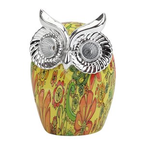 Садово-парковый светильник ERAFYS01-01 'Филин' станет чудесным украшением на вашей загородной территории. Небольшие габариты позволят Вам расположить светильник в палисаднике, украсить прудик, необычно подсветить цветы или вход в дом. Фигурка из полистоуна высотой 16 см с легкостью устанавливается в землю. LED светильник функционирует на солнечной батарее. Такой вид получения энергии является самым экологичным, энергоемким и бесшумным. Питание происходит во включенном режиме, в светлое время суток. С наступлением темноты филин 'просыпается'. Его большие глаза начинают сиять ярким белым светом, создавая таинственную атмосферу на участке. Пестрый желтый рисунок в виде цветов на корпусе будет прекрасно гармонировать с окружающей филина растительностью. Уличный светильник рассчитан на 8 часов непрерывной работы.