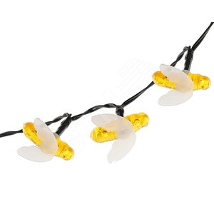 Уличная светодиодная гирлянда ERASG024-03 'Пчелки' станет ярким акцентом на Вашей дачной территории. Удобная конструкция и простая установка позволят Вам расположить гирлянду среди клумб, цветов и кустарников, красочно подсветить аллею, фасад здания или окно. Общая длина 5,8 м. Подсветка работает от солнечной батареи. Такой способ получения энергии является наиболее экологичным и энергоемким. Питание происходит во включенном режиме 'ON'. С наступлением темноты маленькие пчелки загораются. Их животики заливаются желтым светом, создавая веселую атмосферу. Подсветка улицы может длиться непрерывно в течение 8 часов. Высокая степень пыле и влагозащиты позволяет оставлять светильник на улице даже во время дождя.