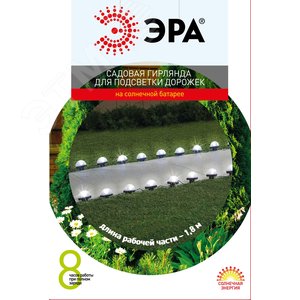 Гирлянда садовая для подсветки дорожек на солнечной батарее 3,8 м (длина рабочей части 1,8 м) 10 LED ERASF23-18