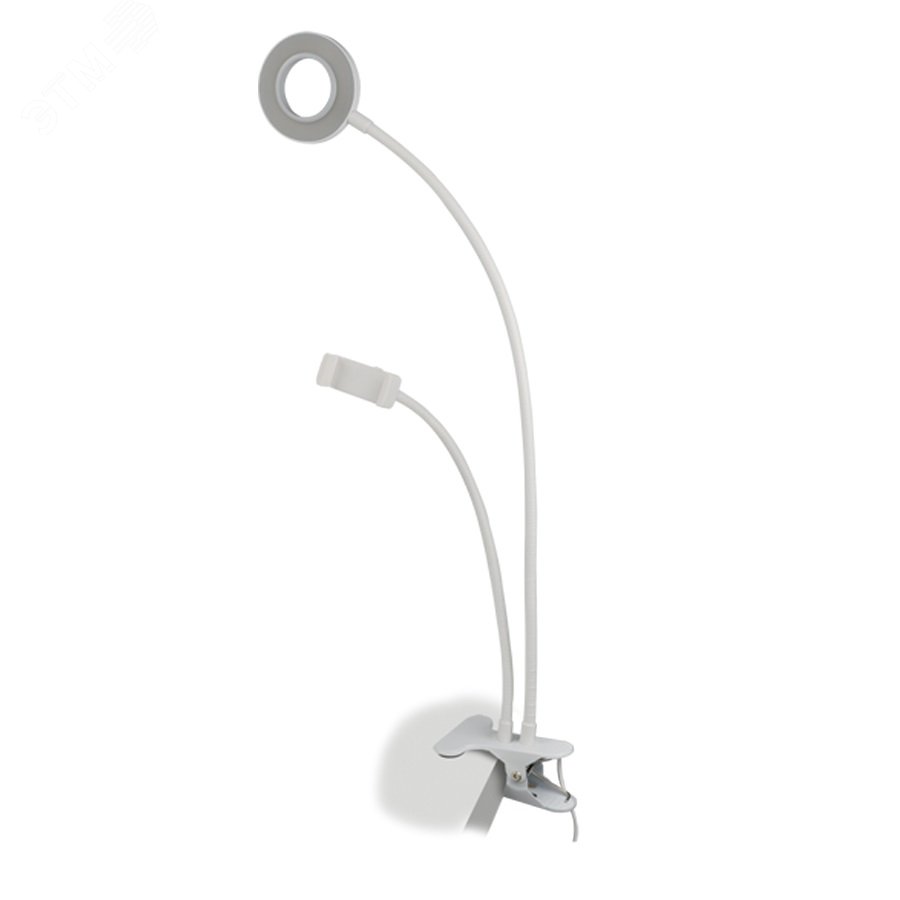 Светильник светодиодный, с диммером и штативом для телефона. ULK-F51-8W/SW/DIM IP20 WHITE Серия Backstage. Теплый свет(3000К)/Белый свет(4000К)/Дневно
