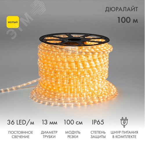Дюралайт LED, постоянное свечение 2W - желтый, 36 LED/м, 100 м Neon-Night 121-121
