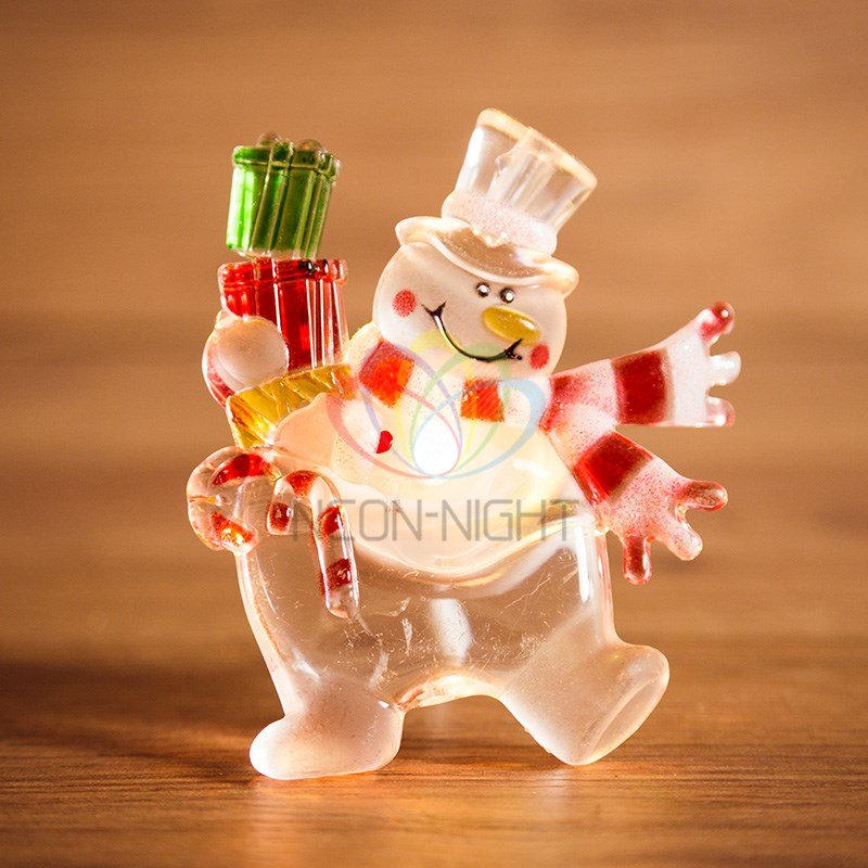 Светодиодная фигурка ''Снеговик с подарком'' выполнена в виде доброго забавного персонажа, который вызывает улыбку при одном взгляде на него. В центре декоративного изделия находится один светодиод RGB, меняющий цвета в хаотичном режиме. Оттенки плавно перетекают из одного в другой — всего 256 разных вариантов гаммы. На оборотной стороне расположен батарейный блок, рассчитанный на установку трех элементов питания типа LR41 (идут в комплекте). Крепкая присоска надежно фиксирует светодиодную фигурку на любых гладких поверхностях.