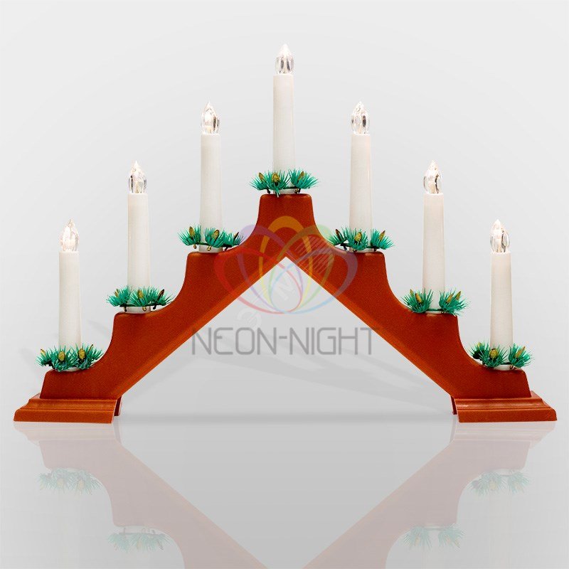 Горка новогодняя 7 свечек, корпуса красный, свечение тёплый белый