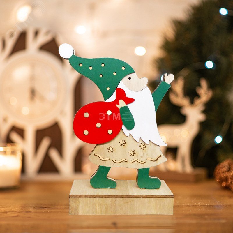 Фигурка деревянная с подсветкой Дед Мороз 18 см