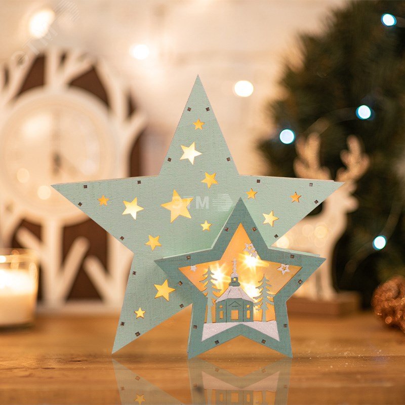 Фигура деревянная с подсветкой Домик звездочета бирюзовая 26х7х25 см,