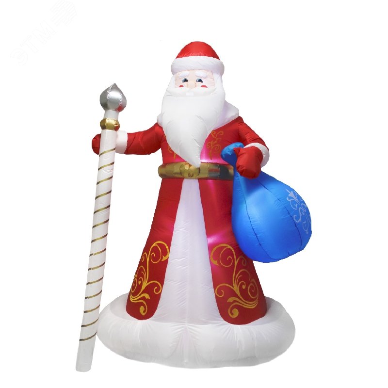 Надувная 3D фигура Деда Мороза – яркий, оригинальный, запоминающийся декор высотой 3 метра, который станет главным украшением новогоднего праздника. Степень влагозащиты IP44 предполагает использование изделия как в помещениях, так и на улице. Вы сможете разместить ее во дворе, на террасе или перед общественным зданием, чтобы создать праздничную атмосферу в любом месте. Наличие подсветки создает эффект мягкого и уютного свечения, придавая фигуре Деда Мороза дополнительное очарование и видимость в темное время суток. Для надувания и поддержания формы фигуры используется компрессор, который поставляется в комплекте с адаптером. Фигура легко монтируется, демонтируется и удобно хранится в сложенном виде. Надувной Дед Мороз идеально подходит для оформления уличного пространства, частной территории и общественных зданий.