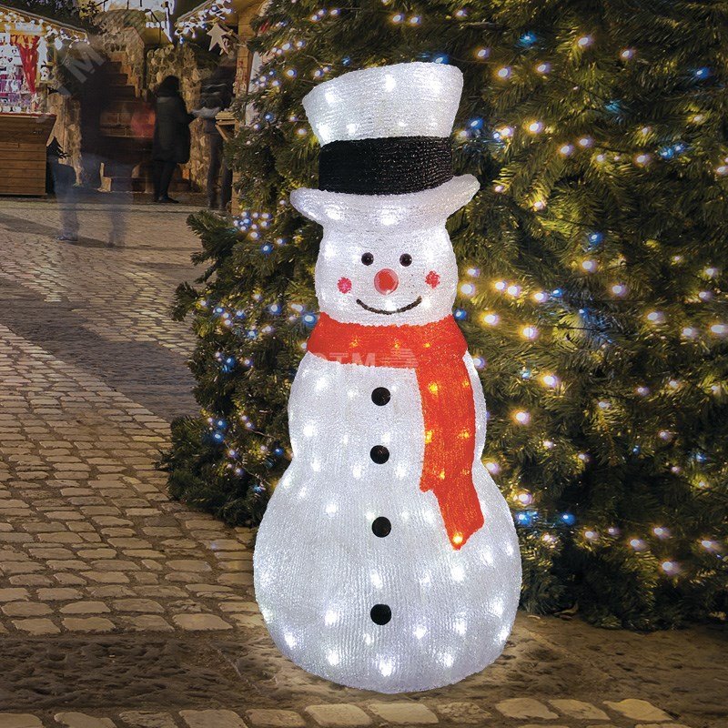 Акриловая светодиодная фигура NEON-NIGHT ''Снеговик в шляпе'' высотой 72 см, светящаяся более чем 160 яркими диодами, выполнена по специальной технологии нанесения акрила. Она позволит вам создать ту самую, настоящую новогоднюю атмосферу и принести сотни радостных улыбок. Эти яркие, светящиеся объемные фигуры, состоящие из металлического каркаса, акрила и светодиодов, применяются для оформления и создания новогодней атмосферы в кафе, ресторанах, торговых центрах, магазинах, на площадях и перед входом, а также просто в частных домах и квартирах. Все фигуры укомплектованы понижающим трансформатором , что обеспечивает безопасность при контактировании, а также имеют степень защиты IP65, что позволяет использовать их как в помещении, так и на улице.