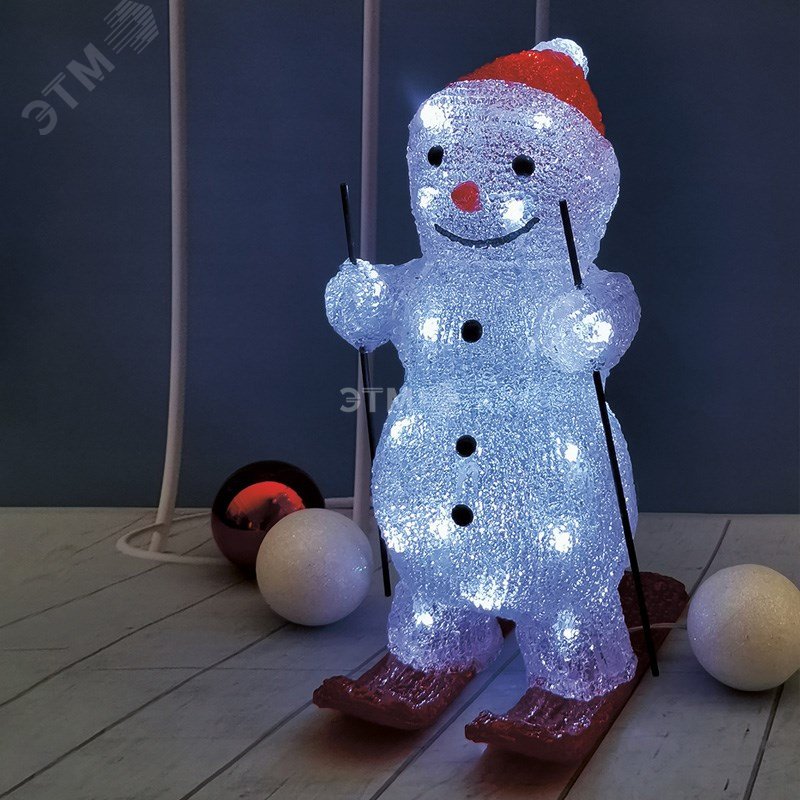Фигура акриловая светодиодная Снеговик на лыжах 16х20х29 см, 30 светодиодов, батарейки 3хАА (не входят в комплект)