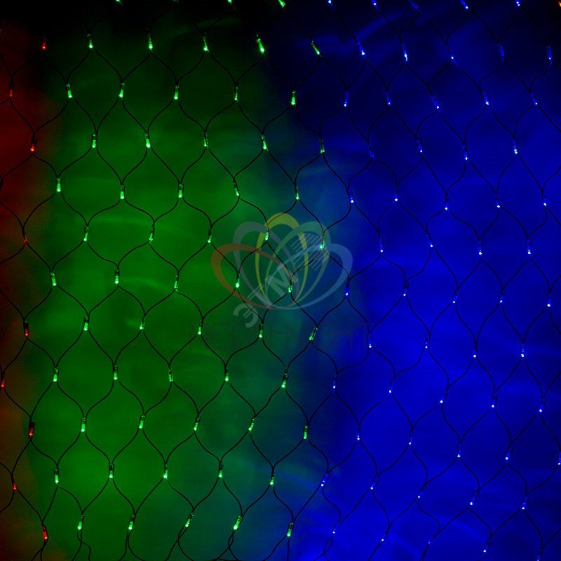 Гирлянда-сеть представляет из себя конструкцию в виде прямоугольника размером 1*1,5 метра, разбитого на равные ромбы, в углах которых находятся диоды красного, зеленого и синего цвета (RGB), причем диоды чередуются через один. Гирлянда имеет степень влагозащиты IP65 и ПВХ провод черного цвета, что позволит вам быстро и выгодно решить вопрос с декоративным украшением любых объектов как внутри помещения, так и снаружи. В комплекте идет контроллер с 8 режимами свечения, что позволяет гирлянде работать в динамике. Данная гирлянда используется для украшения фасадов и потолков зданий практически любой площади, отлично подходит для украшения небольших кустов, растяжки между направляющими в беседке или веранде, ей можно легко и быстро обмотать колонны или столбы, служит красивым декором окон зданий.