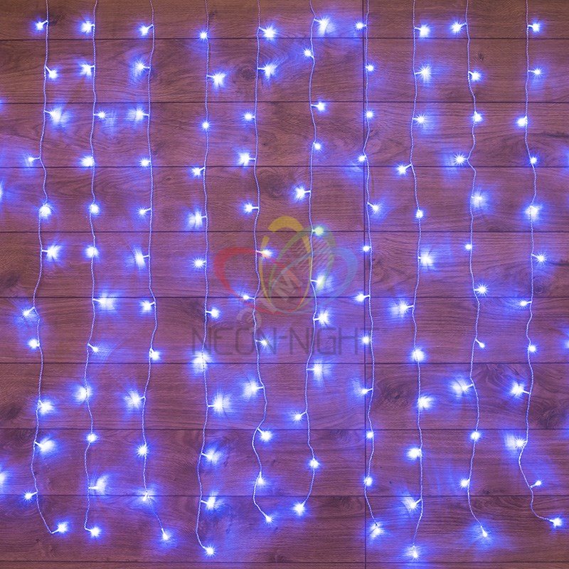 Гирлянда светодиодный Дождь 1,5х1 м, свечение с динамикой, прозрачный провод, 230 В, диоды синие