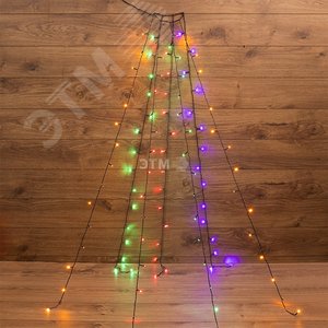 Елочная гирлянда с кольцом и 7 нитями по 1,8 м питается от электросети с напряжением 230 Вольт через трехметровый кабель. Штепсельная вилка совместима со всеми розетками. Гирлянда предназначена для украшения новогодних елок в интерьере. В конструкции 126 диодов, светящихся синим, зеленым, красным и желтым цветами. Главное преимущество изделия — простота использования - достаточно надеть кольцо на вершину ели и расправить нити — оригинальный праздничный декор готов. Диоды не нагреваются и подходят для оформления искусственных деревьев. Контроллер с 8 режимами позволяет менять динамику свечения в соответствии с обстановкой.
