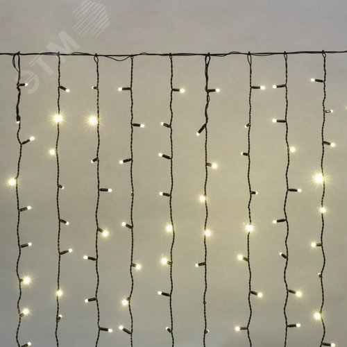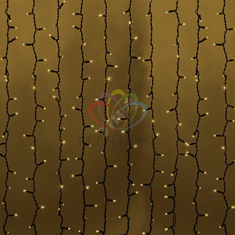 Гирлянда ''Светодиодный Дождь'' представляет собой гибкий горизонтальный шнур-шину (2м), к которому через определенные промежутки крепятся вертикальные нити (20 шт.) со светодиодными лампами, которые отличаются от ''Бахромы'' тем, что имеют одинаковую, достаточно значительную длину, часто превышающую протяженность шины. На концах каждой шины есть разъем и штепсель, которые предназначены для последовательного соединения нескольких световых дождей в большой занавес ПЛЕЙ-ЛАЙТ. Используя занавес, можно не только создавать красивые световые занавесы или оформлять различные плоскости, например, фасады домов, окна и т.д., но и украшать объемные объекты.