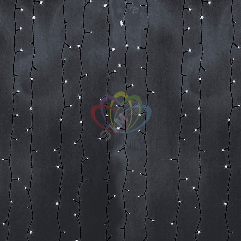 Гирлянда светодиодный Дождь 2х3 м, постоянное свечение, черный провод, 230 В, диоды белые Neon-Night 235-145