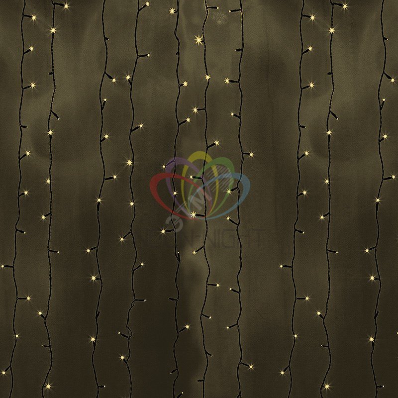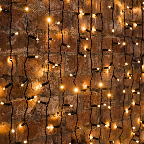 Гирлянда ''Светодиодный Дождь'' представляет собой гибкий горизонтальный шнур-шину (2м), к которому через определенные промежутки крепятся вертикальные нити (20 шт.) со светодиодными лампами, которые отличаются от ''Бахромы'' тем, что имеют одинаковую, достаточно значительную длину, часто превышающую протяженность шины. На концах каждой шины есть разъем и штепсель, которые предназначены для последовательного соединения нескольких световых дождей в большой занавес ПЛЕЙ-ЛАЙТ. Используя занавес, можно не только создавать красивые световые занавесы или оформлять различные плоскости, например, фасады домов, окна и т.д., но и украшать объемные объекты.