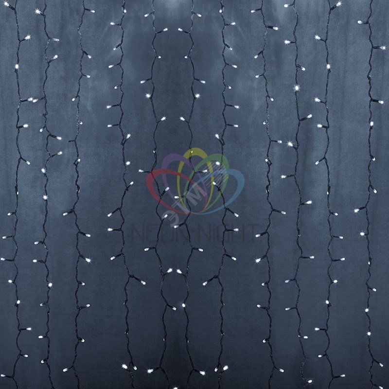 Гирлянда ''Светодиодный Дождь'' представляет собой гибкий горизонтальный шнур-шину (2м), к которому через определенные промежутки крепятся вертикальные нити (20 шт.) со светодиодными лампами, которые отличаются от ''Бахромы'' тем, что имеют одинаковую, достаточно значительную длину, часто превышающую протяженность шины. На концах каждой шины есть разъем и штепсель, которые предназначены для последовательного соединения нескольких световых дождей в большой занавес ПЛЕЙ-ЛАЙТ. Используя занавес, можно не только создавать красивые световые занавесы или оформлять различные плоскости, например, фасады домов, окна и т.д., но и украшать объемные объекты.