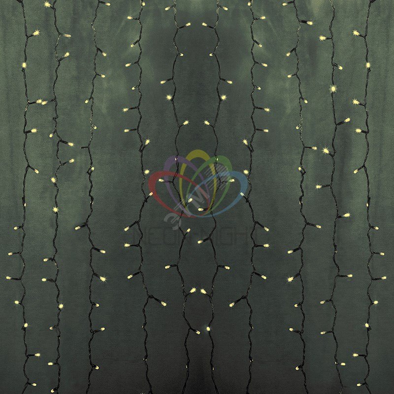 Гирлянда ''Светодиодный Дождь'' представляет собой гибкий горизонтальный шнур-шину (2м), к которому через определенные промежутки крепятся вертикальные нити (20 шт.) со светодиодными лампами, которые отличаются от ''Бахромы'' тем, что имеют одинаковую, достаточно значительную длину, часто превышающую протяженность шины. На концах каждой шины есть разъем и штепсель, которые предназначены для последовательного соединения нескольких световых дождей в большой занавес ПЛЕЙ-ЛАЙТ. Используя занавес, можно не только создавать красивые световые занавесы или оформлять различные плоскости, например, фасады домов, окна и т.д., но и украшать объемные объекты.