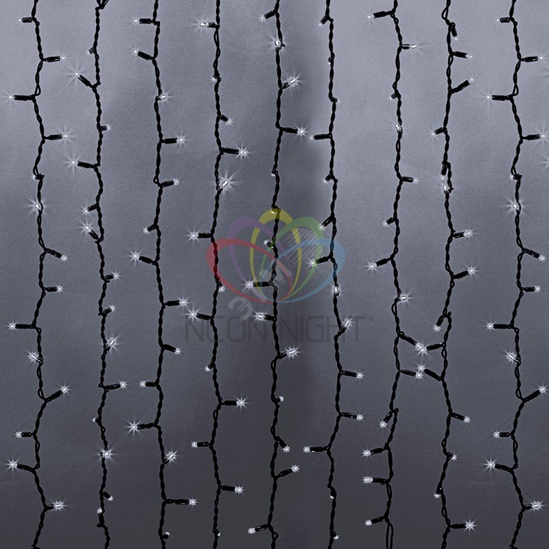 Гирлянда ''Светодиодный Дождь'' представляет собой гибкий горизонтальный шнур-шину (2м), к которому через определенные промежутки крепятся вертикальные нити (20 шт.) со светодиодными лампами, которые отличаются от ''Бахромы'' тем, что имеют одинаковую, достаточно значительную длину, часто превышающую протяженность шины. На концах каждой шины есть разъем и штепсель, которые предназначены для последовательного соединения нескольких световых дождей в большой занавес ПЛЕЙ-ЛАЙТ. Используя занавес, можно не только создавать красивые световые занавесы или оформлять различные плоскости, например, фасады домов, окна и т.д., но и украшать объемные объекты. Данная гирлянда имеет эффект водопада.