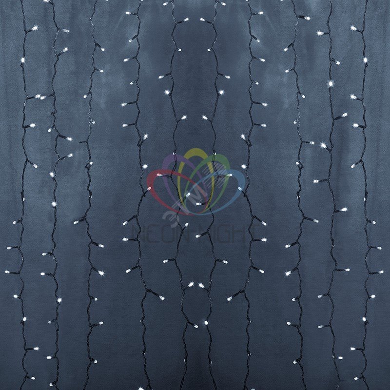 Гирлянда светодиодный Дождь 2х1,5 м, постоянное свечение, прозрачный провод, 230 В, диоды белые Neon-Night 235-305