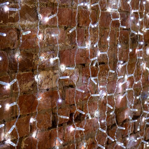 Гирлянда ''Светодиодный Дождь'' представляет собой гибкий горизонтальный шнур-шину (2м), к которому через определенные промежутки крепятся вертикальные нити (20 шт.) со светодиодными лампами, которые отличаются от ''Бахромы'' тем, что имеют одинаковую, достаточно значительную длину, часто превышающую протяженность шины. На концах каждой шины есть разъем и штепсель, которые предназначены для последовательного соединения нескольких световых дождей в большой занавес ПЛЕЙ-ЛАЙТ. Используя занавес, можно не только создавать красивые световые занавесы или оформлять различные плоскости, например, фасады домов, окна и т.д., но и украшать объемные объекты. Светодинамические эффекты становятся доступными только при подключении гирлянды к сети через специальный контроллер.