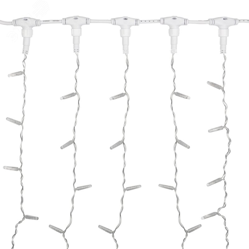 Гирлянда Светодиодный Дождь представляет собой гибкий горизонтальный шнур-шину (2 м), к которому через определенные промежутки крепятся вертикальные нити (16 шт) со светодиодными лампами, которые отличаются от Бахромы тем, что имеют одинаковую, достаточно значительную длину, часто превышающую протяженность шины. На концах каждой шины есть разъем и штепсель, которые предназначены для последовательного соединения нескольких световых дождей в большой занавес ПЛЕЙ-ЛАЙТ. Используя занавес, можно не только создавать красивые световые занавесы или оформлять различные плоскости, например, фасады домов, окна и т.д., но и украшать объемные объекты. Светодинамические эффекты становятся доступными только при подключении гирлянды к сети через специальный контроллер.