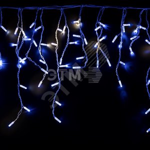 Гирлянда ''Бахрома'' (''Айсикл'') представляет собой гибкий горизонтальный шнур-шину, к которому через определенные промежутки крепятся вертикальные нити разной длины со светодиодами. Она имитирует сосульки и может послужить эффектным и оригинальным решением при декорировании карнизов домов, арок, фасадов зданий, витрин магазинов, а также стать элементов декора внутренних интерьеров помещений. Благодаря использованюя в гирлянде светодиодов, ее отличительной особенностью является превосходная яркость и низкое энергопотрбление по сравнению с лампами накаливания. При длине 4.8 метра гибкая направляющая имеет 48 вертикальных нити от 20 до 60 см. Особенностью является наличие мерцающих светодиодов Белого цвета, которые привлекают внимание и значительно преображают украшенную поверхность (мерцает каждый пятый светодиод). Шнур питания приобретается отдельно, код товара ETM7861007.
