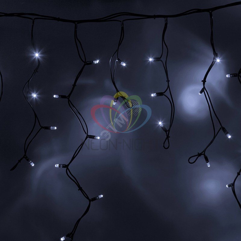 Гирлянда Айсикл Бахрома светодиодный, 4,0 х 0,6 м, черный провод каучук, 230 В, диоды белые, 128 LED Neon-Night 255-225