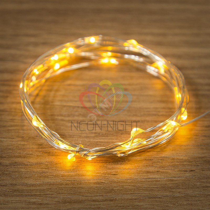 Гирлянда Роса, 2 м, 20 диодов, желтый, тонкий батарейный блок