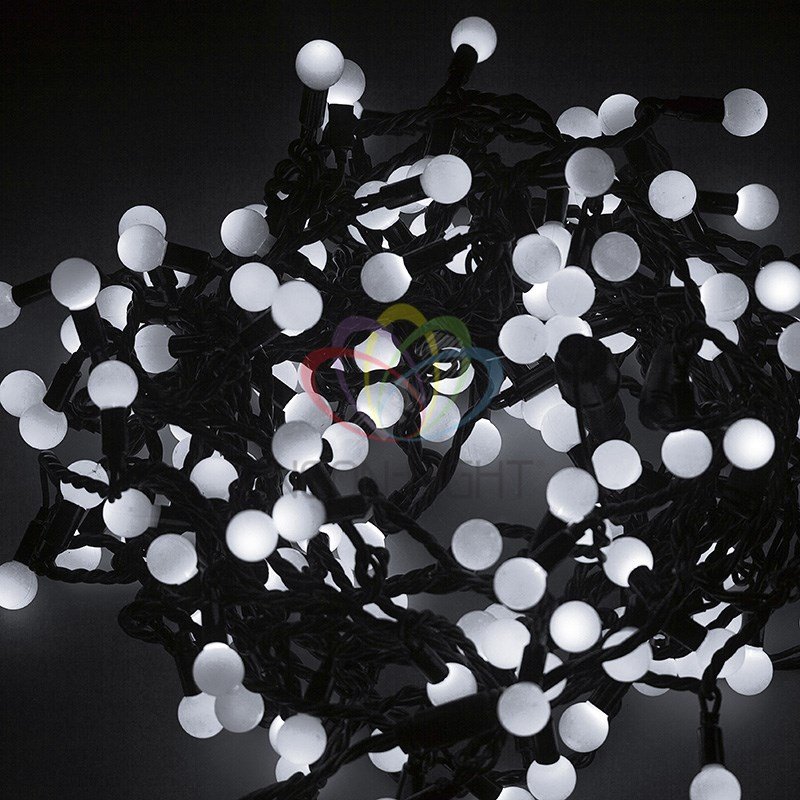Гирлянда ''LED шарики'' представляет собой электрический шнур, имеющий длину 10 или 20 м, на котором располагаются сверх яркие светодиодные лампы, изготовленные в виде шариков с диаметром 1,3-1,75 см. Светодиоды по сравнению с миниатюрными лампами накаливания имеют целый ряд существенных преимуществ. Их отличает чистое и яркое свечение, огромный ресурс, прочность, незначительное потребление энергии, надежность. Гирлянда ''LED шарики'' великолепно подходит для украшения витрин магазинов, помещений, больших интерьерных и уличных елок, превращая их в настоящие произведения искусства. Благодаря хорошей влагозащищенности гирлянду можно использовать как в помещении, так и на улице. Данная гирлянда имеет белый цвет свечения светодиодов.