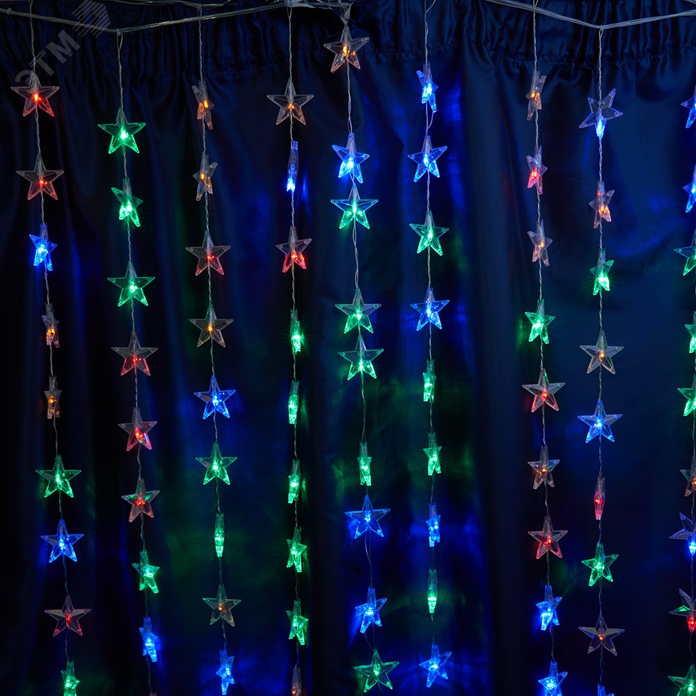 Гирлянда занавес Звездочки LED мультиколор 2x1м